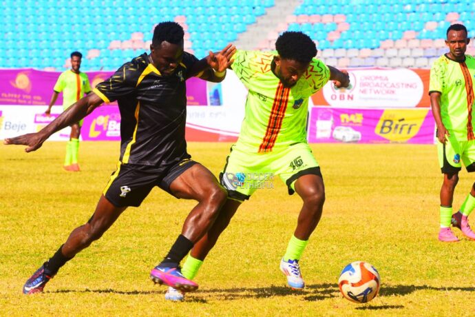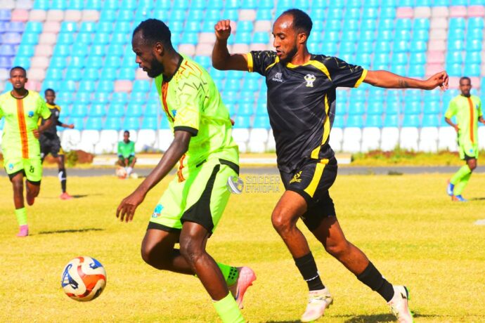 የመጀመሪያው አጋማሽ ሊጠናቀቅ የተጨመሩ 3 ደቂቃዎች አልቀው 45+4′ ላይ የጦና ንቦቹ የአቻነት ግብ አስቆጥረዋል። ከቅጣት ምት የተሻገረውን ኳስ ወልዋሎዎች በትክክል ሳያርቁት ቀርተው ከሳጥን አጠገብ ያገኘው ውብሸት ክፍሌ በድንቅ ሁኔታ በመምታት ግብ አስቆጥሯል።