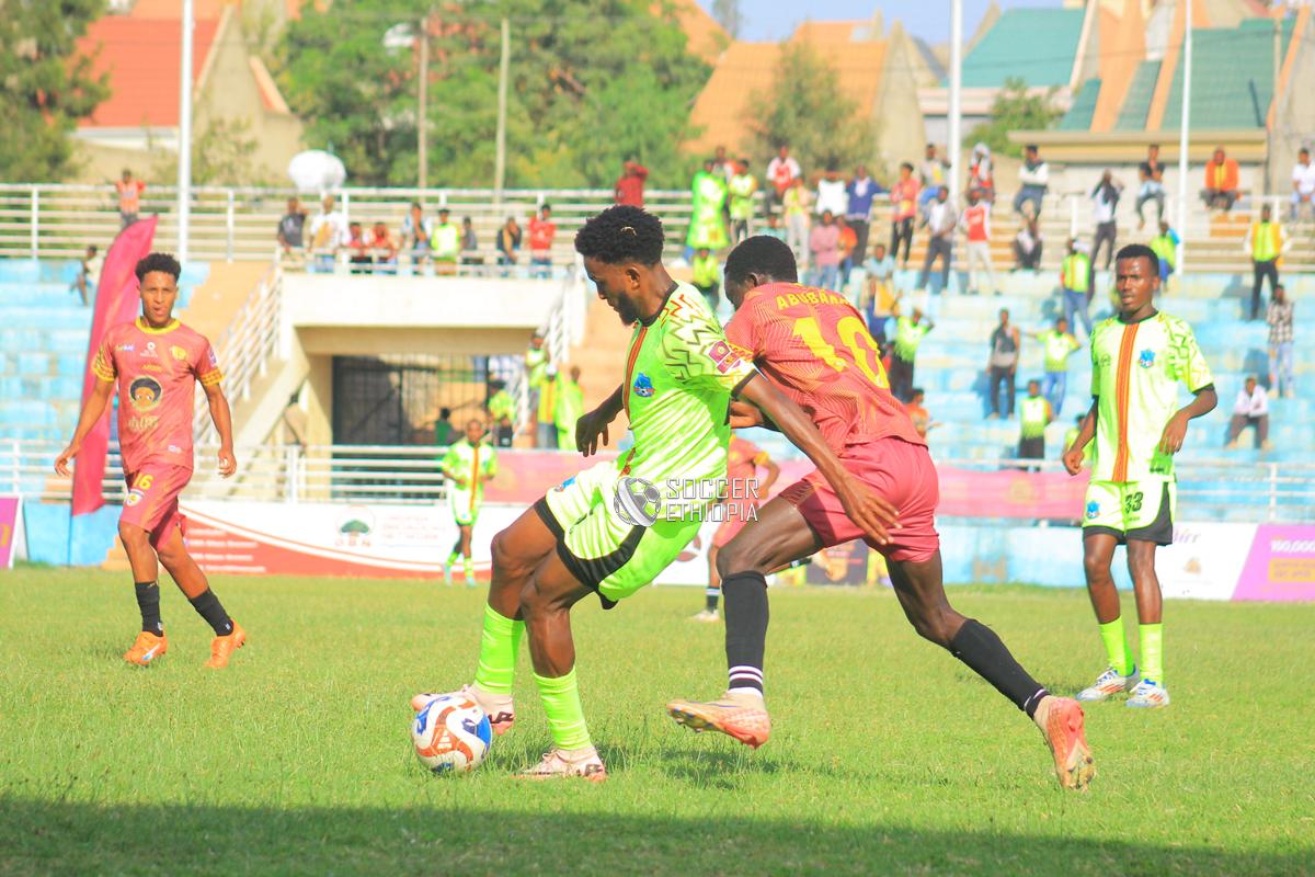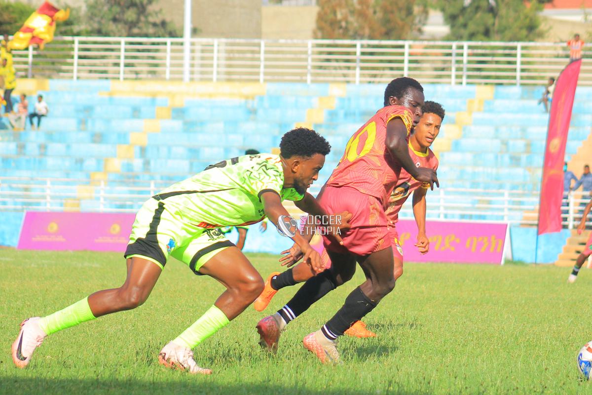 ቡድኖቹ እየተፈራረቁ የጨዋታ ብልጫ በወሰዱበት በአጋማሹ ቡናማዎቹ መሪ መሆን የቻሉበትን ግብ መረብ ላይ በማሳረፍ ቀዳሚ ሆነዋል። 14ኛው ደቂቃ አቡበከር አዳሙ ያሾለካትን ኳስ ያገኘው ኤርሚያስ ሹምበዛ መሬት ለመሬት ብዙም ጠንካራ ያልሆነችውን ያሻገራት ኳስ ቢኒያም ገነቱ በቀላሉ ተቆጣጠራት ተብላ ስትጠበቅ የኳሷ አቅጣጫ ተቀይሮ መረብ ላይ አርፋ ቡናማዎቹን መሪ ማድረግ ችላለች። ከግቧ መቆጠር በኋላ አንፃራዊ የኳስ ቁጥጥር ብልጫ ወስደው በጫና የአቻነት ግብ ፍለጋቸውን የቀጠሉት የጦና ንቦች ሲሆኑ የተቃራኒ ቡድን ሜዳ ክፍል ላይ ደርሰው የሚያደርጉት ሙከራ አስቆጪ ከመሆን ባሻገር ኢላማውን የጠበቀ ሳይሆን ቀርቶ አጋማሹ ተገባዷል።